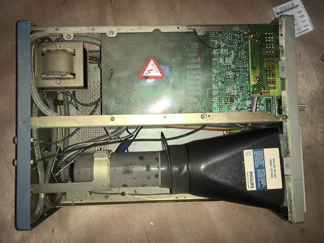 掀起你的盖头来……也许是年代久远、也许是保存不当、也许是当年生产工艺不行或者其他种种原因,机箱外壳的好多螺丝都已经生锈了,好在有一定的拆机经验,不怕螺丝滑牙,经过短时间的努力后终于把所有螺丝都拆开,拆开了上盖。当盖子打开的那一瞬间,我惊呆了,居然有我钟爱的飞利浦:来自荷兰原装进口的飞利浦CRT显示器(96年那会儿我叔叔买了部飞利浦的手机,也不知道什么原因,从那以后我对飞利浦情有独钟,后来更是种种原因,特别喜欢飞利浦这个品牌),而且这货成色还是那么美!!!当然难免有些落灰,回头清理一下不影响使用就可以。