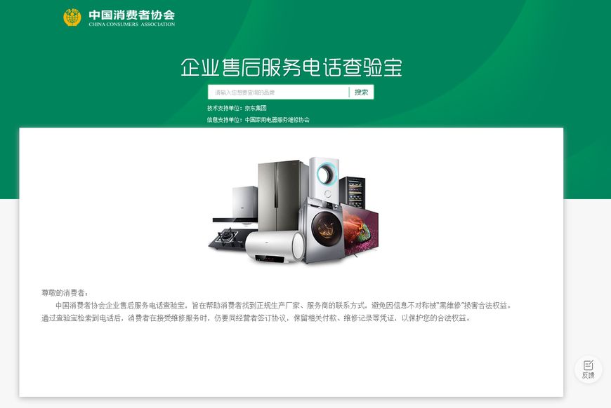 2017年9月27日,在京东商城的技术支持下,中消协开通“售后服务电话查验宝”。“查验宝”开通之初,主要收集的是与消费者生命健康权关系最密切的抽油烟机、灶具、热水器、空调等产品品牌的联系方式。下一阶段,中消协将锁定钟表、手机等维修侵权的重灾区,加强对这些领域的有效真实客服信息的收集提供工作。