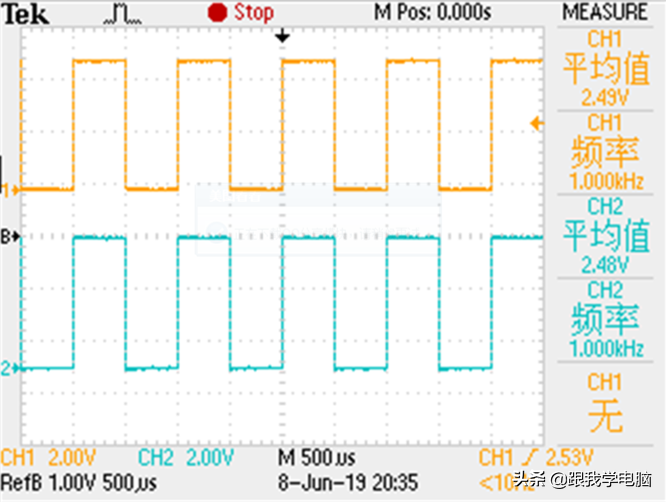 15.最终两个通道的信号就会出现在屏幕上.