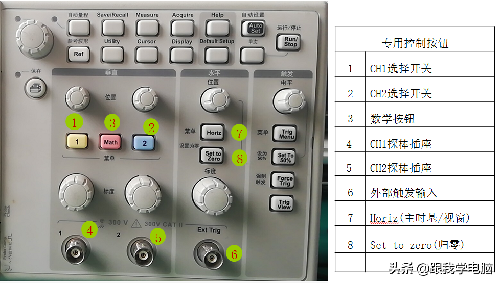 2.示波器专用控制按钮介绍: