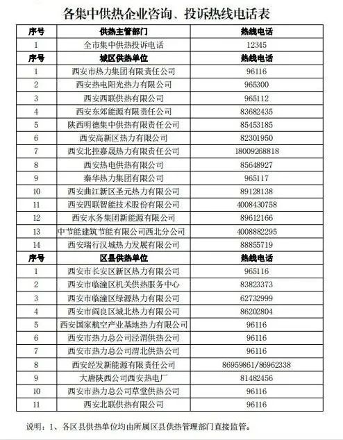 西安供暖最新消息来了!25家集中供暖企业电话公布
