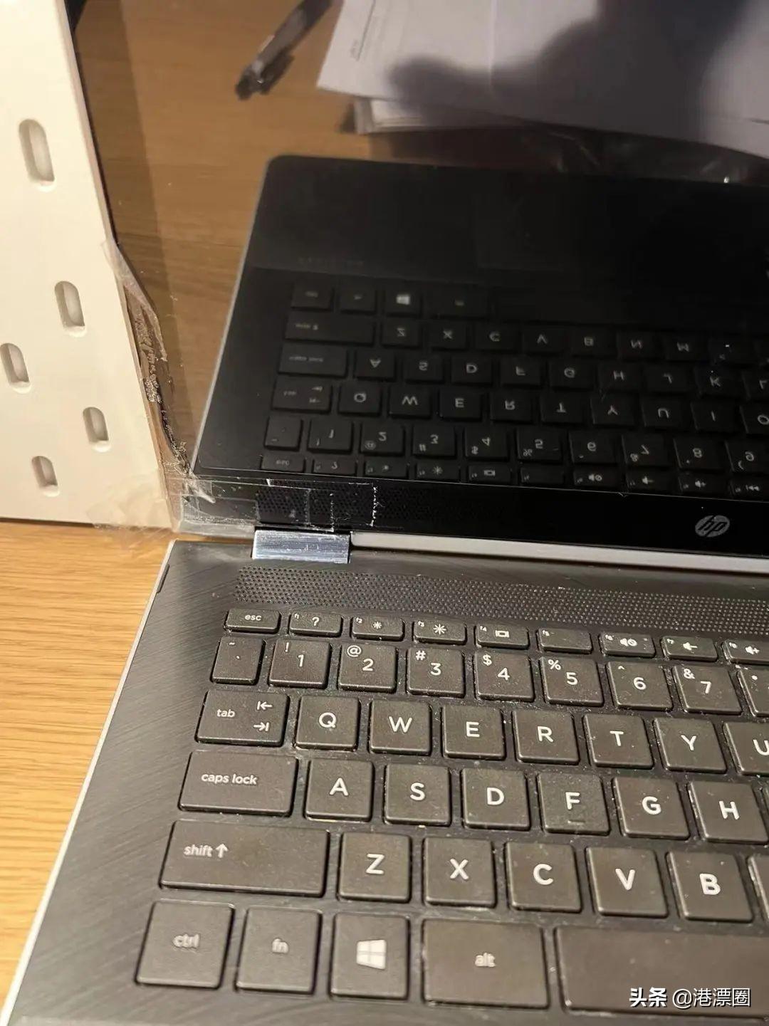 H先生一看,又想出一个办法了。他先是用力把面板压住,往里涂了一点强力胶,最后用透明胶固定,然后盖上屏幕。用重重的书本压了一个晚上,这分明是靠着力气大硬掰。第二天打开一看,好像是真的修好了,只是笔记本仿佛受过伤贴着创口贴呢。
