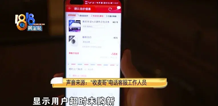 “收麦哥”电话客服工作人员:“这种以旧换新订单,需要下完回收订单,马上购买新机订单才可以成立,或者关联不到一起会被取消。显示用户超时未购新,被系统自动取消掉了 (以旧换新订单什么时候)是6月1号9点35分(热水器是上午9点47分下的,只隔了12分钟,为什么会取消)这边只显示超时未购新自动取消(是你们判定的吗)不是我们是,是天猫系统判定的。”