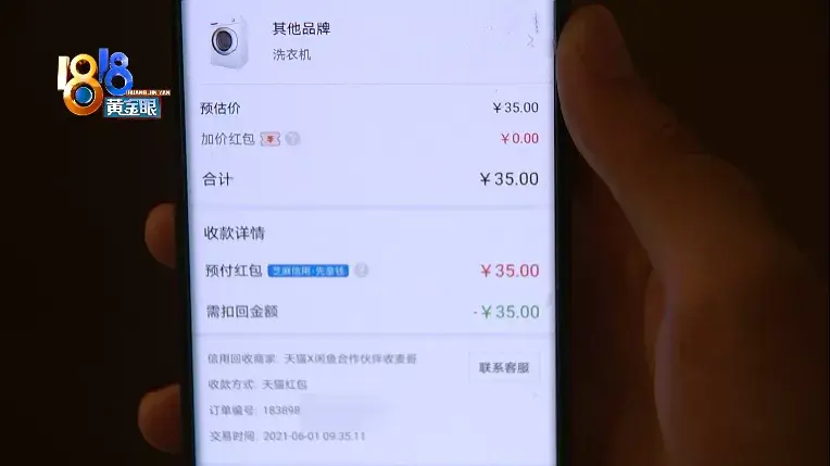 记者把章先生这个订单的情况,反映给了平台工作人员。平台方回复,用户在第一次填写以旧换新意愿后,获得了预付的35元旧机红包,当时页面有提示:这个红包需要在20分钟之内,在这笔订单内使用,超时或者用于其他订单,将被回收。消费者实际操作中,取消了第一笔订单,而将红包用到了其他订单中,因此,按照规则,红包被回收。对于用户来说,红包回收了,也无需提交自己的旧家电了。平台方面表示,赞赏用户以旧换新节能的行动,愿意无偿补贴用户相同的费用,也欢迎用户把旧家电通过闲鱼省心卖进行单独回收,获得现金收益。