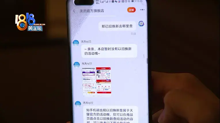 章先生:“没有跟我联系,我就去查看单子,找不到以旧换新订单,后来问美的客服,他也不是很清楚,建议我找天猫,问了天猫告诉我以旧换新的路径,点进去以后能查看到,