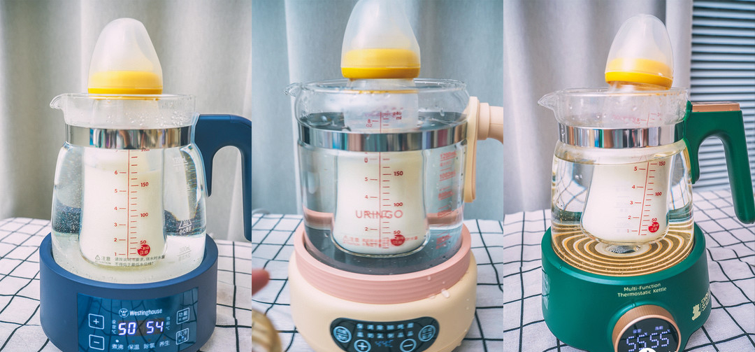 三款好用的调奶器暖奶器全玻璃恒温热水壶同框对比分享