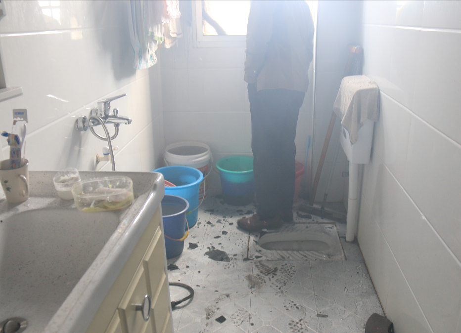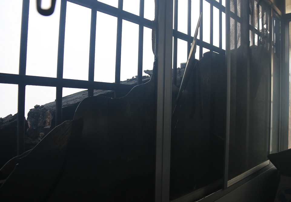 起火仓库周边的一栋居民楼内受火灾影响,屋内一片狼藉。尚一网 记者 王浪实习生 莫懿娟摄