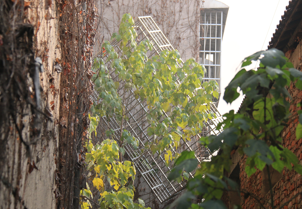 起火仓库附近一掉落在屋顶的防盗窗。尚一网 记者 王浪实习生 莫懿娟摄