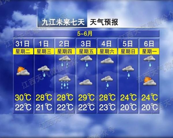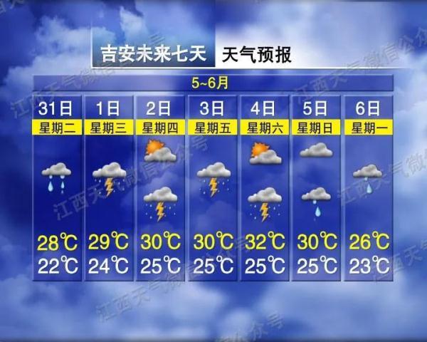 赣北、赣中阴天多云有阵雨或雷阵雨,部分地区有中雨,局部地区有大到暴雨;赣南多云,局部地区有阵雨或雷阵雨。明天最低温度:全省22~24℃。