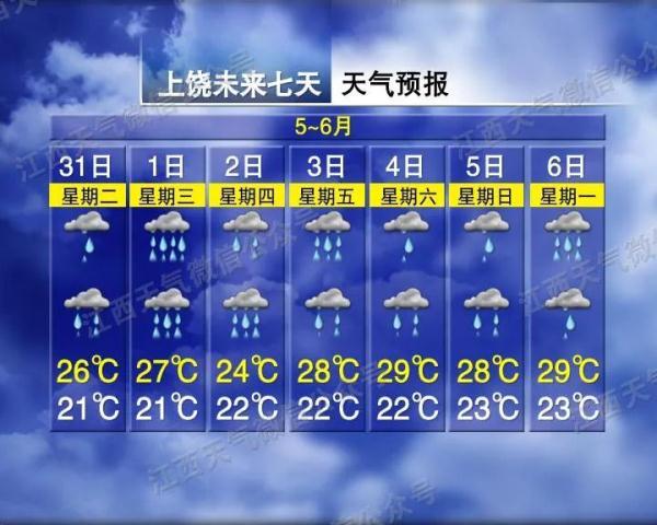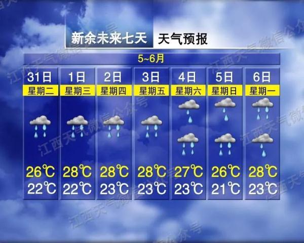 萍乡、新余、鹰潭、吉安、抚州五市和宜春、南昌、上饶三市南部阴天有小到中雨或雷雨,局部地区有大到暴雨;全省其他地区阴天多云,部分地区有阵雨或雷阵雨。全省雷雨来时,部分地区伴有短时强降水、局部地区伴有强雷电和雷暴大风等强对流天气,请注意防范。