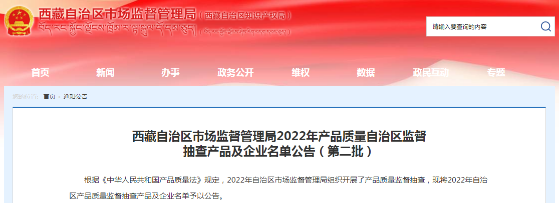 西藏自治区市场监管局2022年产品质量自治区监督抽查产品及企业名单公告(第二批)