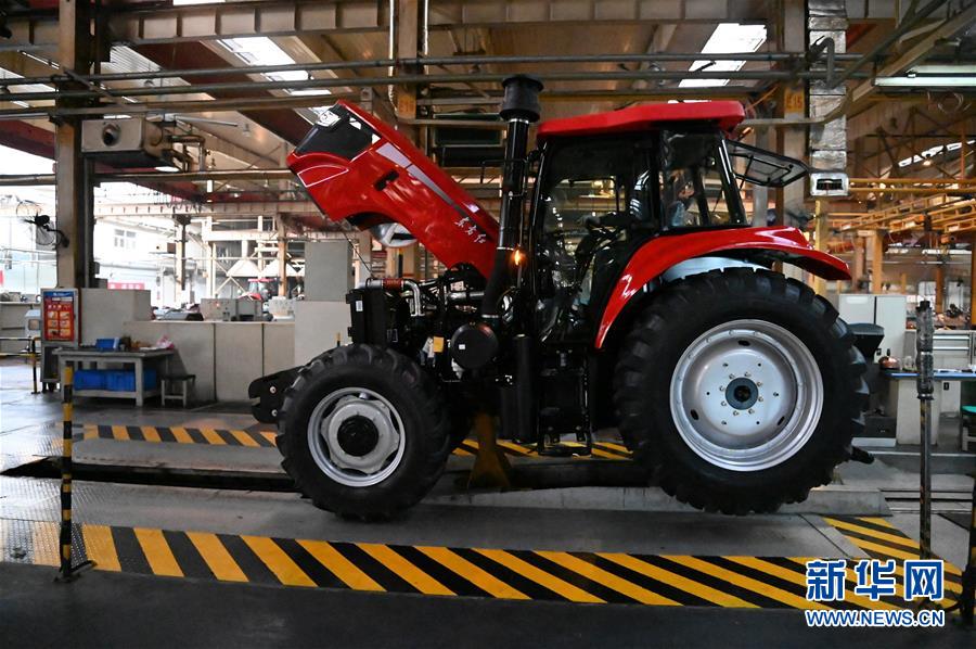 这是6月10日在中国一拖的拖拉机生产线上拍摄的东方红拖拉机。 新华社记者 张浩然 摄
