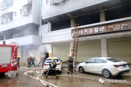 图为2019年5月5日火灾发生时消防人员正在实施救援。桂林消防供图