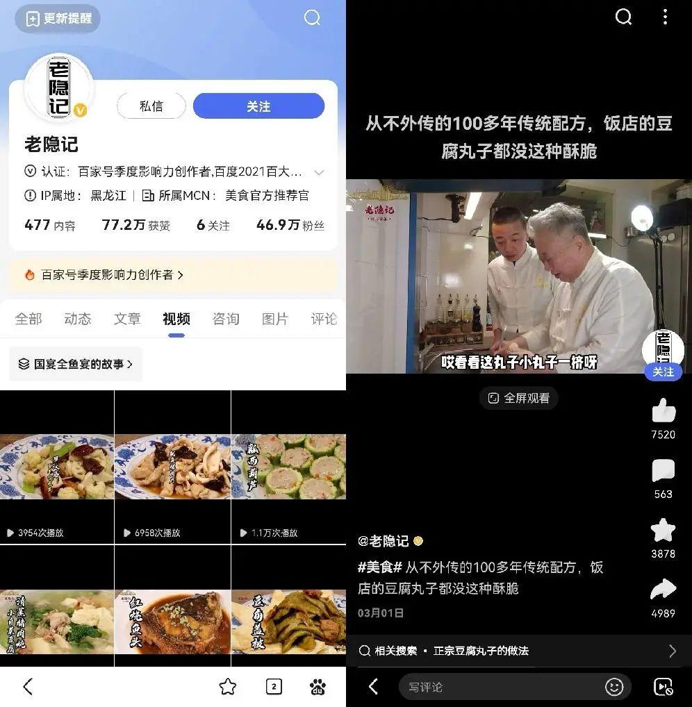 香酥鸭子、奶汁肉饼、全鱼宴……这些备受称赞的美食如今在“老隐记”的视频里悉数呈现,李宝珠和他的徒孙王贺自称老隐和小隐,两人通过有趣的互动向网友展示着国宴菜、传统家常菜的做法。