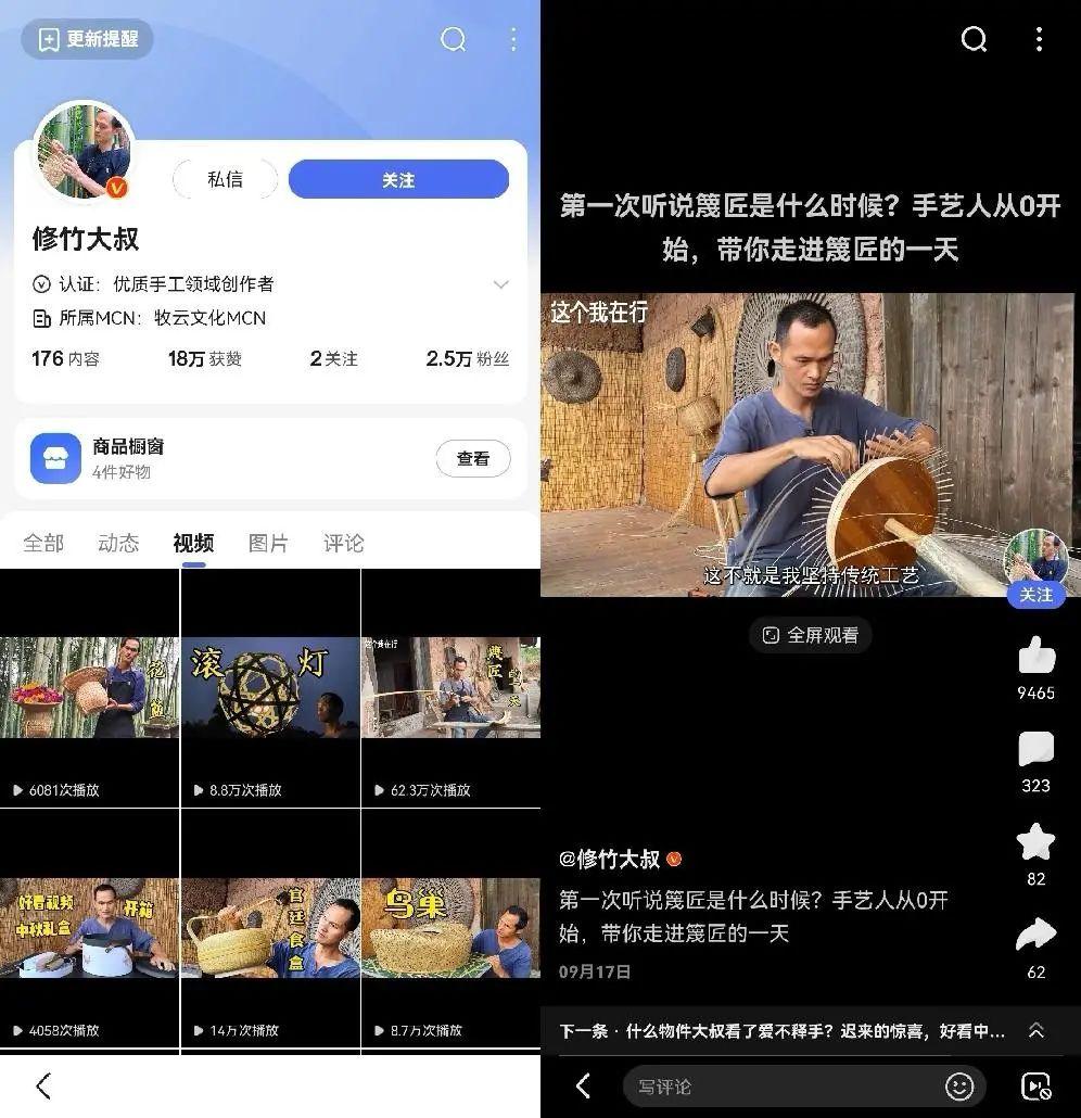 深藏不露的手艺人逐渐冒了出来。或许你没听过“篾匠”,但你一定见过草帽、竹篓、簸箕等竹编用品,“修竹大叔”从事竹编行业10多年,通过短视频分享奇妙的竹编艺术,发扬非遗文化。