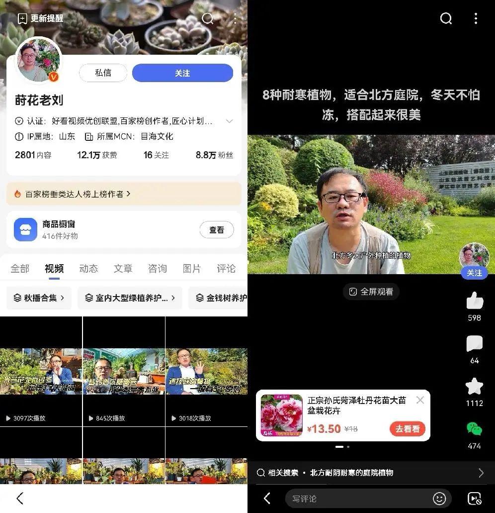 类似的,园艺方面有疑问,可以找“莳花老刘”。他从2017年起业余就在百家号上分享各类花草的养护知识,先是写图文,关注才能解锁的干货内容吸粉效果明显,有时一篇文章就能带来一两千粉丝。