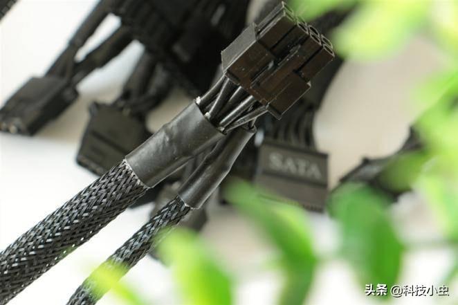 线材采用了蛇网包线,端头部位用热缩套管包扎收尾,整个线材制作精良,不但使得整体线材整洁,而且加固了整体的强度;所有线材进行了加长的设计,可以进行机箱的隐藏式背部布线,标准的全塔机箱都可以满足。