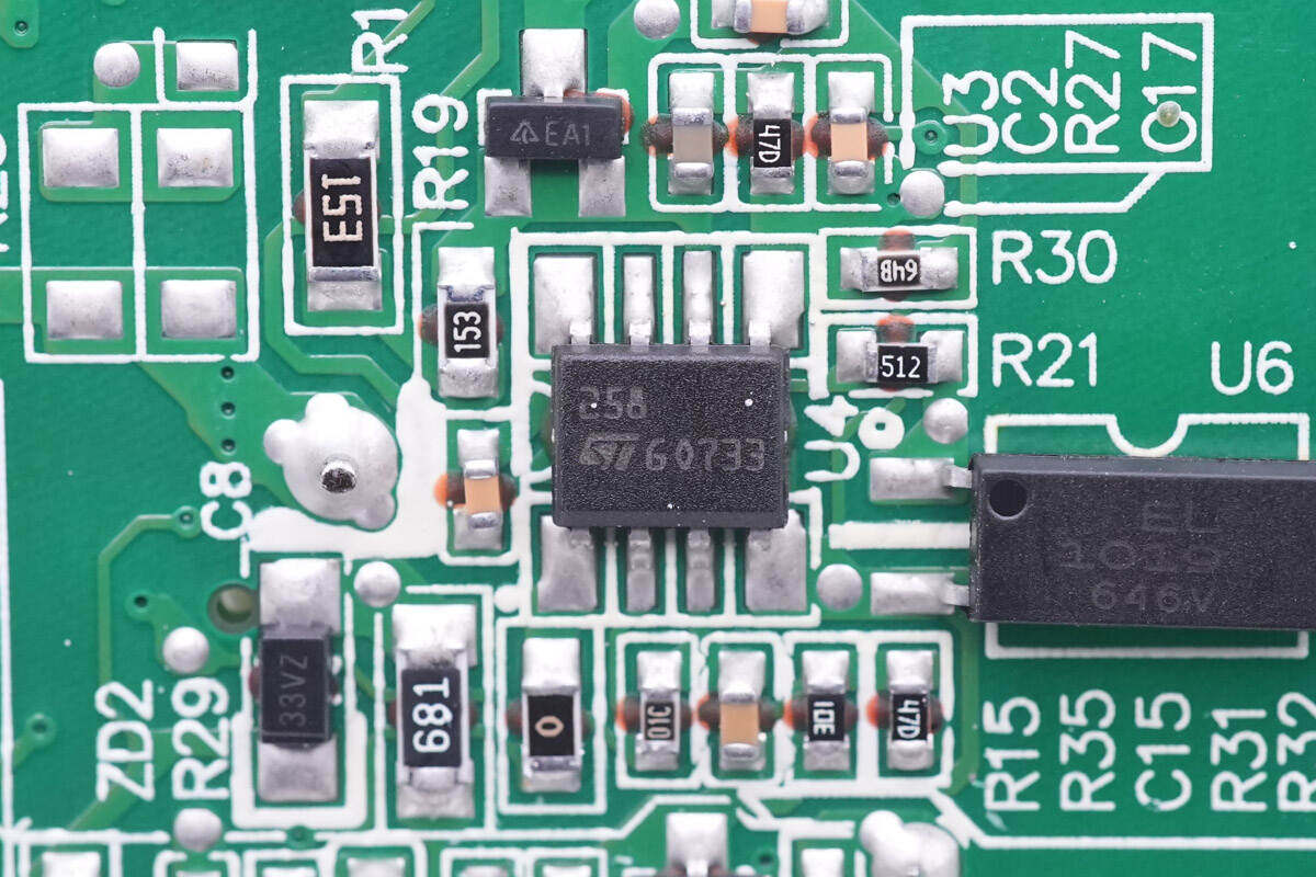 背面焊接初级主控芯片,反馈光耦和运放芯片。