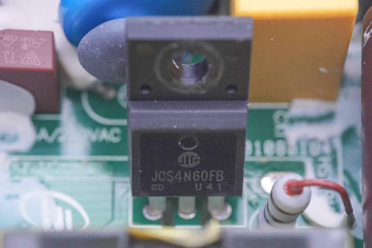 初级开关管来自吉林华微,型号JCS4N60FB,是一颗耐压600V的NMOS,导阻为2.4Ω,采用TO220F封装。