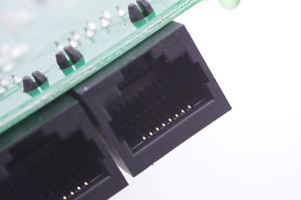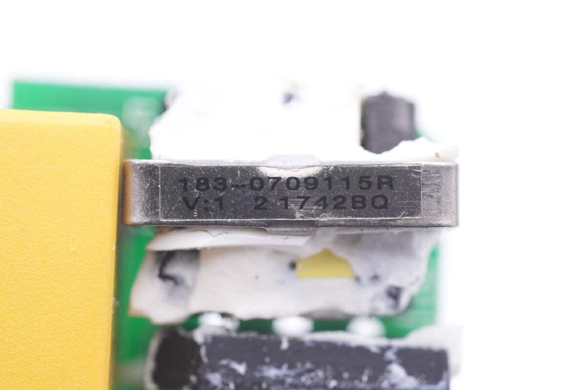 开关管固定有散热片,变压器和网口插座通过白色胶水固定。