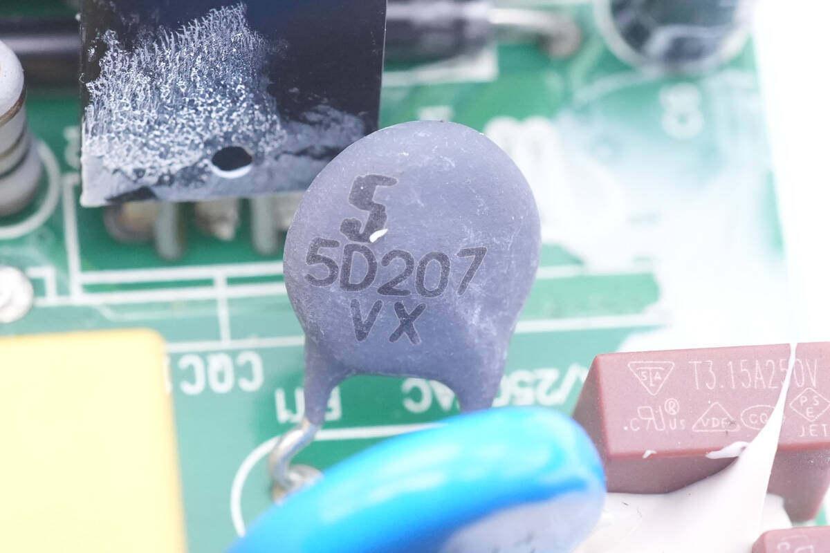 6.3A保险丝连接压敏电阻,进行浪涌过电压保护,压敏电阻来自君耀电子,型号681KD14。