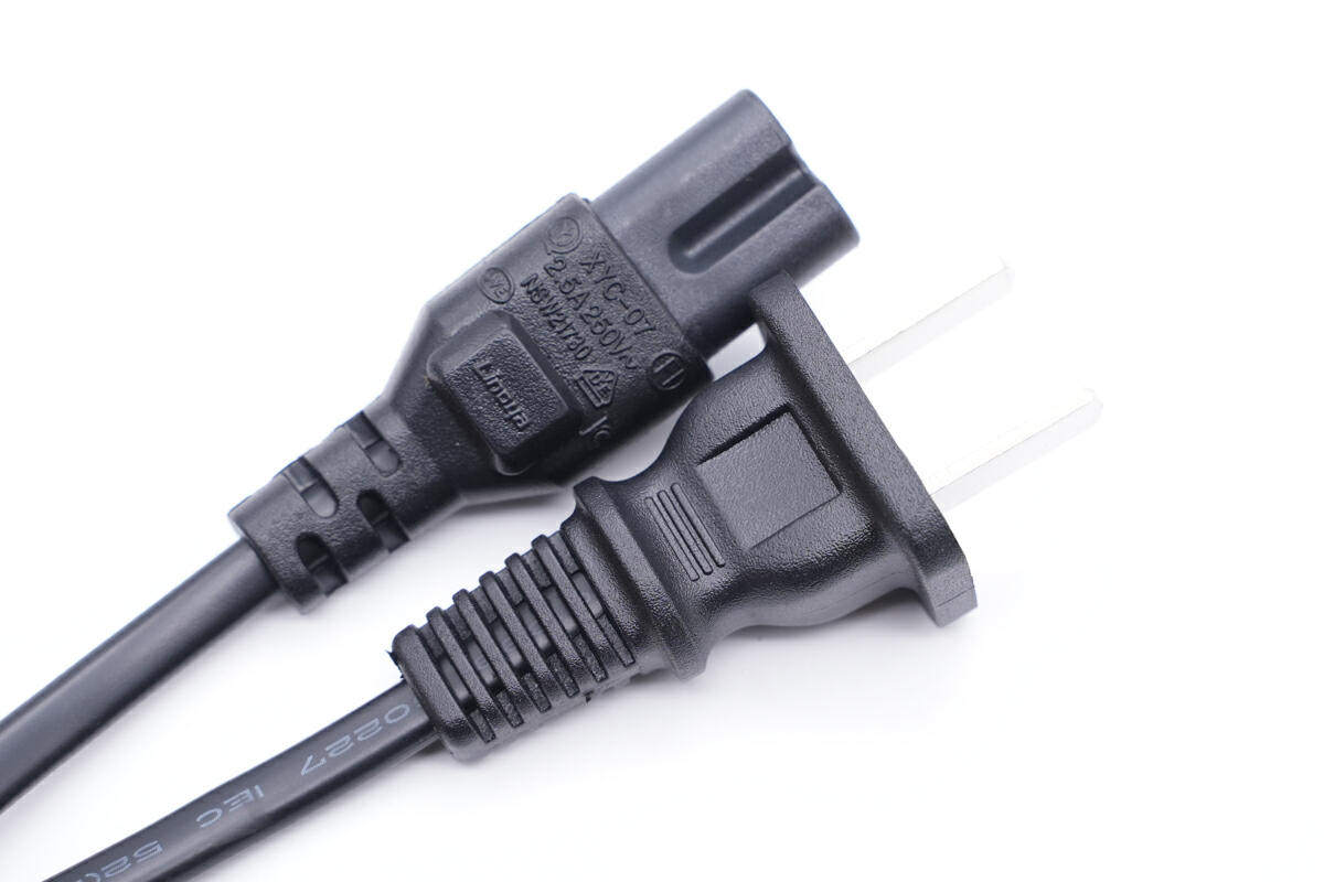 电源线两端分别是双脚插头和8字插头,规格为2.5A250V~。
