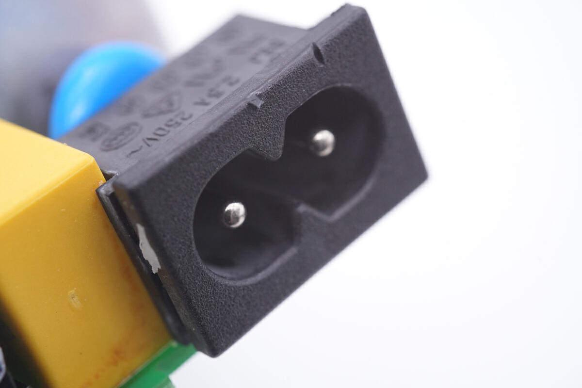 电源输入端一览,焊接共模电感,安规X2电容和电源插座。