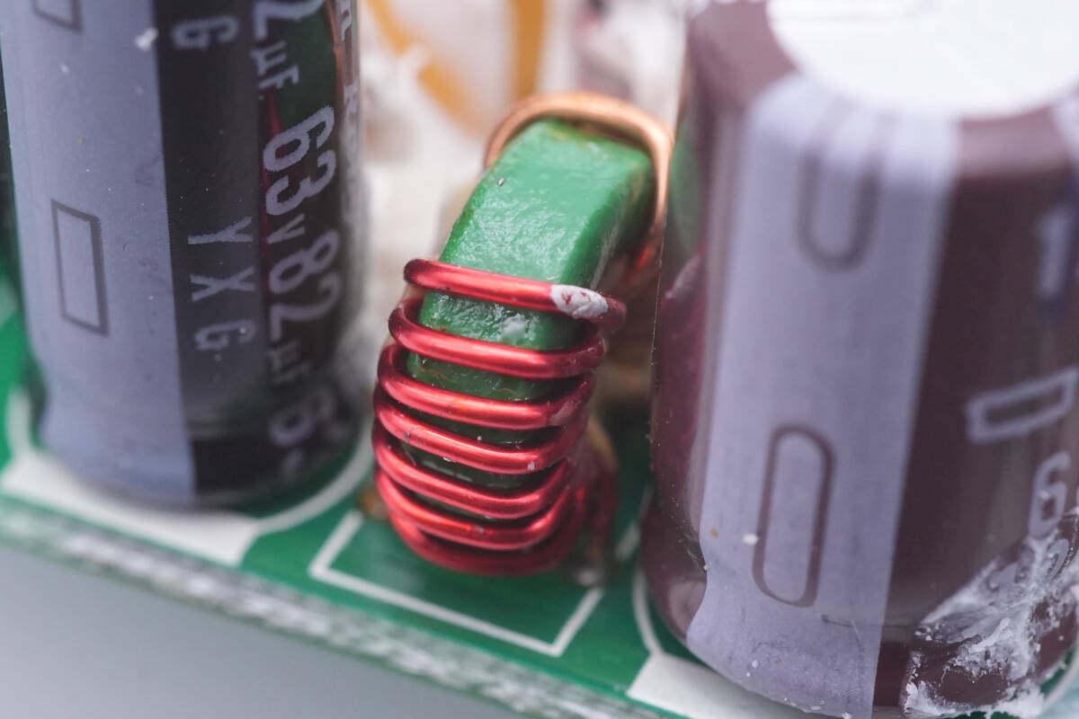 另一颗输出滤波电容来自红宝石,规格为63V82μF。