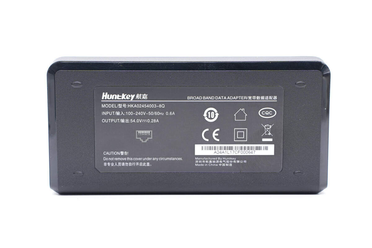 PoE供电器是一种基于PoE技术的供电模块,符合IEEE802.3af/at标准,可以为网络电话、网络摄像头、无线AP等设备供电。拆解的这款航嘉宽带数据适配器,实际上还是一款POE供电器,具备54V0.28A输出功率,满足为支持POE供电的设备供电。
