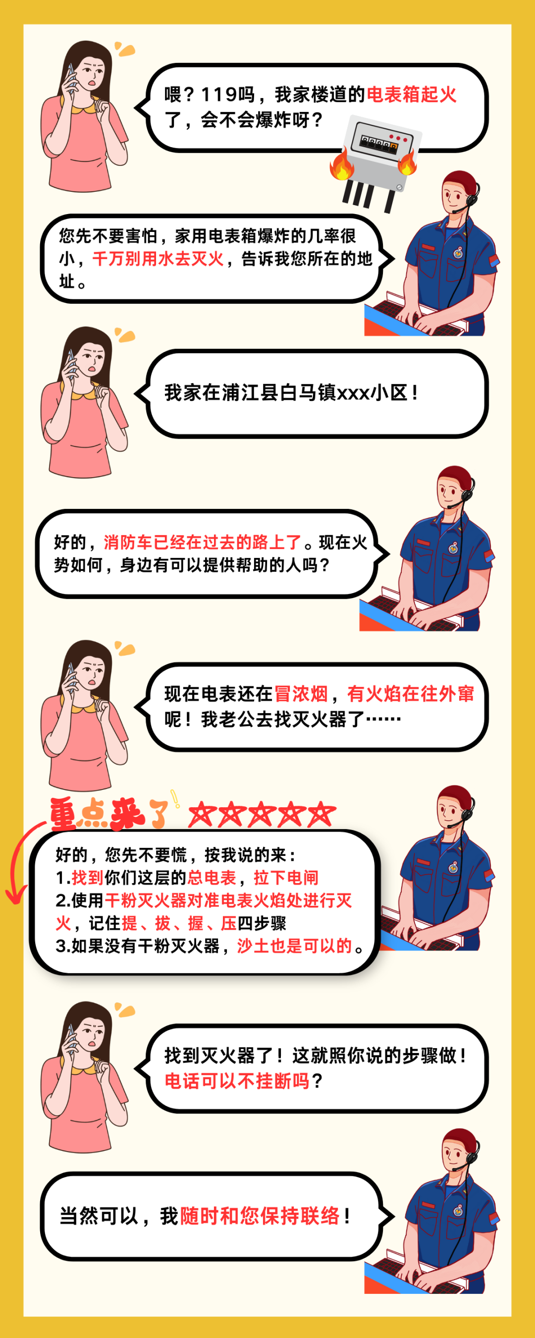 电表箱起火不要惊慌,第一时间切断电源 ,再用干粉 或者气体灭火器灭火 ,也可用沙土代替 ,及时拨打火警119电话寻求救助。