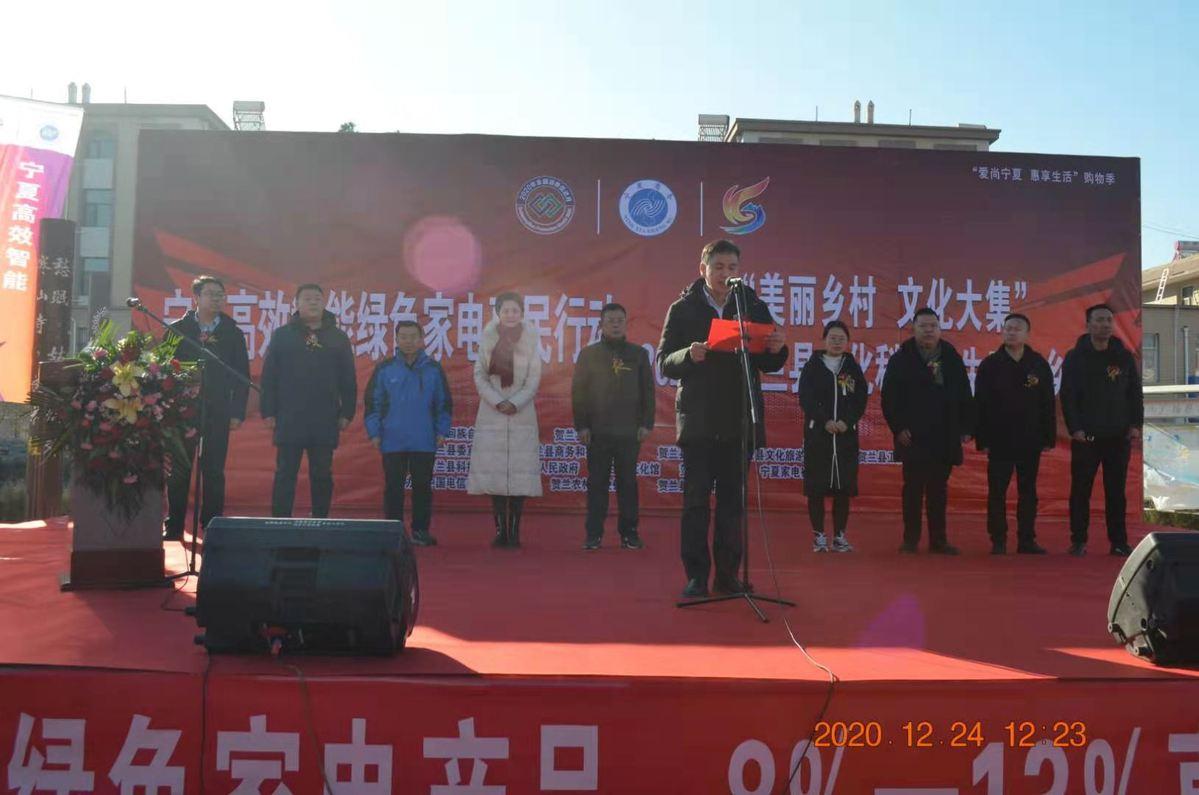 12月24日,由宁夏回族自治区商务厅和贺兰县人民政府共同主办的“美丽乡村 文化大集”2021年贺兰县文化科技卫生三下乡活动暨宁夏高效智能绿色家电惠民行动在贺兰县金贵镇民族团结广场举行。