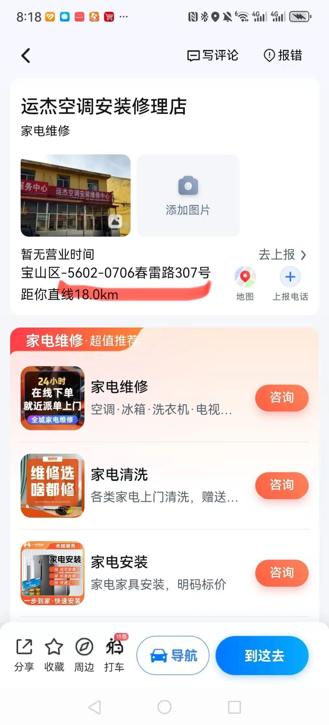 探查过程中,区消保委在办公地点以“空调维修”为关键词分别在高德地图及百度地图搜索周边家电维修服务,随后各选取排名靠前的10家家电维修部(共计20家)进行了实地核实。结果如下: