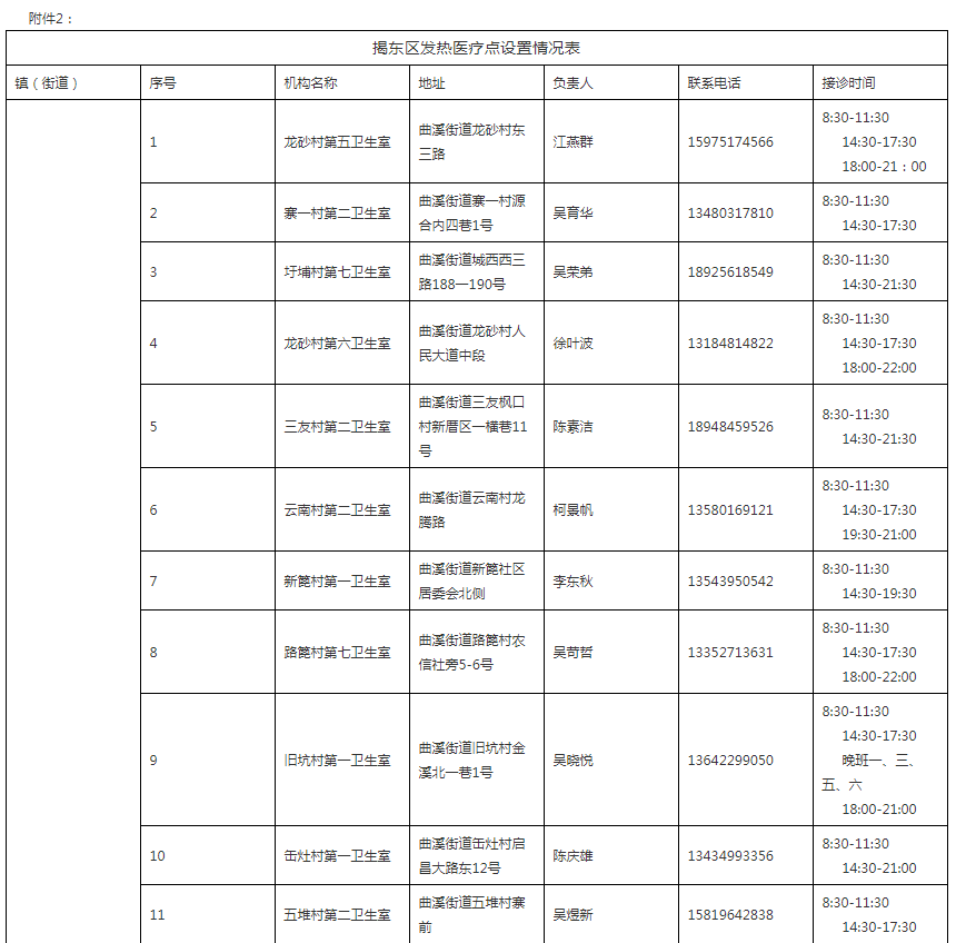 2、揭东区发热医疗点设置情况表