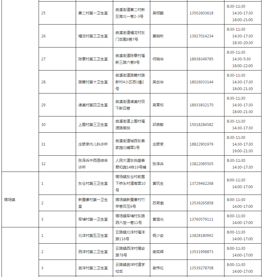 同时,在各镇(街道)村卫生室、诊所等选点增设发热医疗点,广大市民如出现发热等症状时,可第一时间到发热医疗点就近就便就医,各发热医疗点将为市民提供必要的健康咨询、健康监测、用药指导等服务。