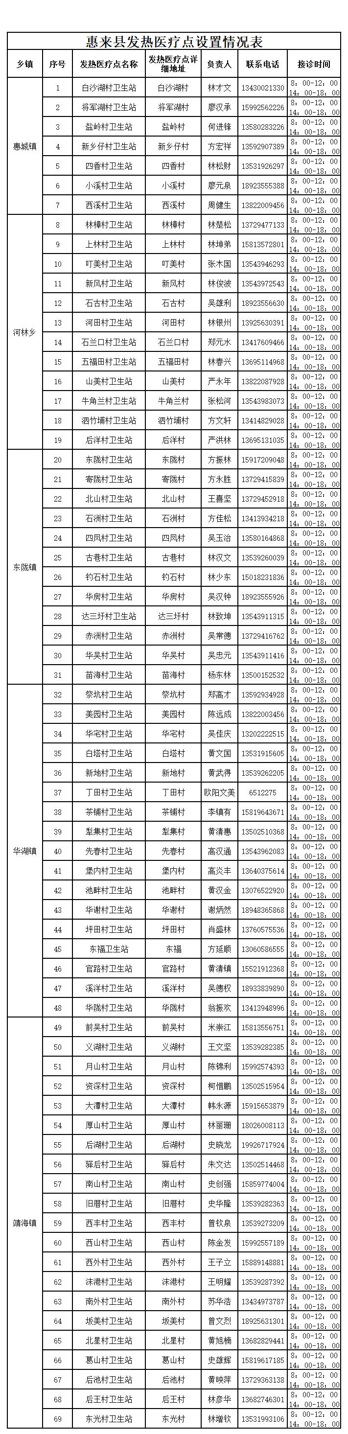 关于在惠来县设立发热医疗点的通告