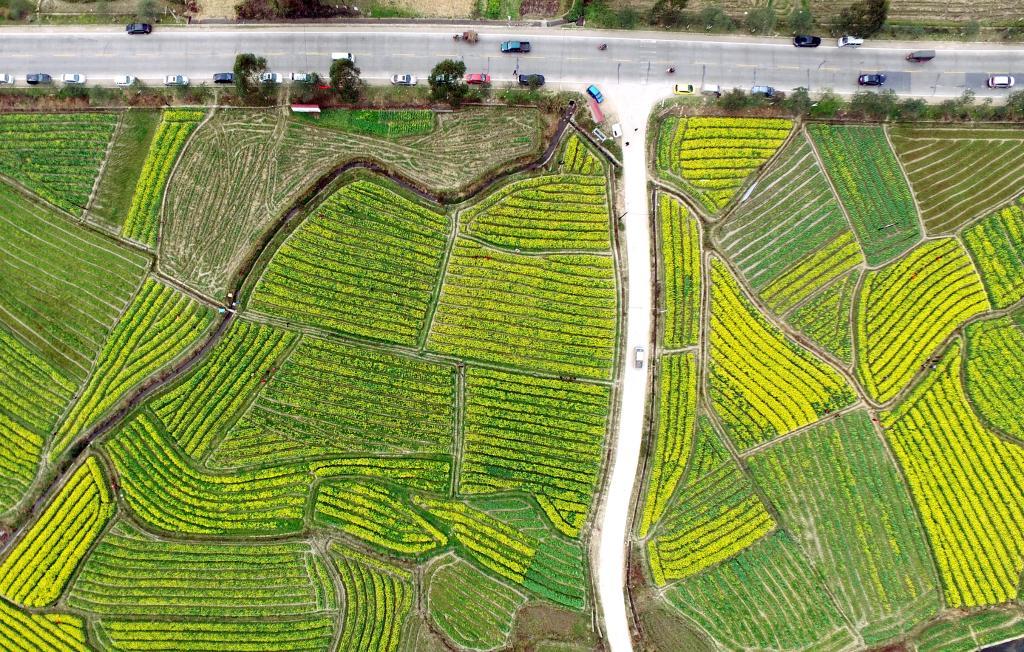 2016年雨水节气过后,广西柳州市融安县境内209国道旁盛开的油菜花海。