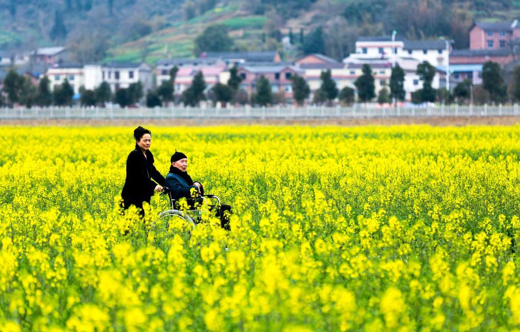 2015年雨水时节,游人在重庆市南川区欣赏盛开的油菜花。