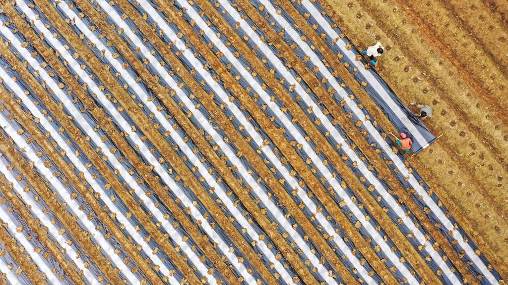 2023年雨水节气前,湖南省永州市新田县农民抢抓农时开展农事活动。