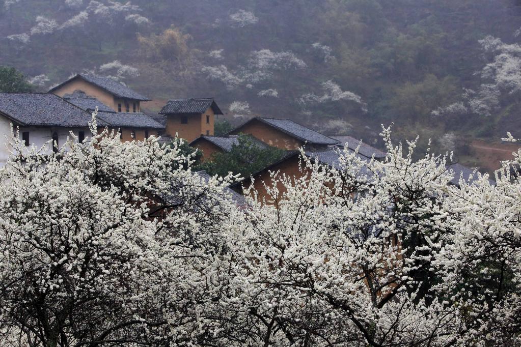 2023年雨水节气后,福州永泰境内李花盛开。
