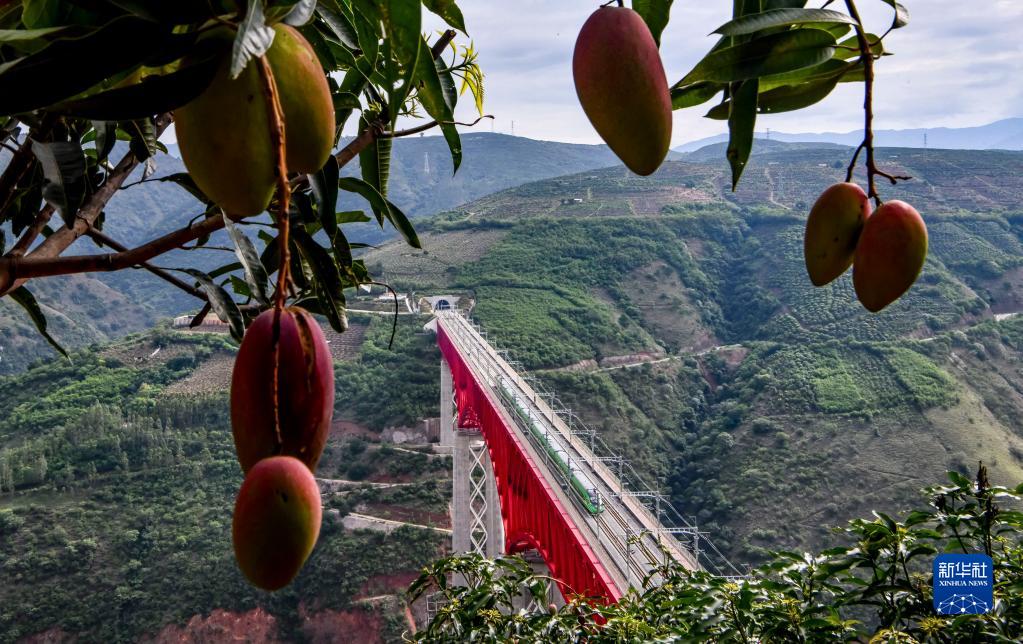 复兴号列车通过中老铁路元江特大桥(2022年6月1日摄)。新华社记者 江文耀 摄