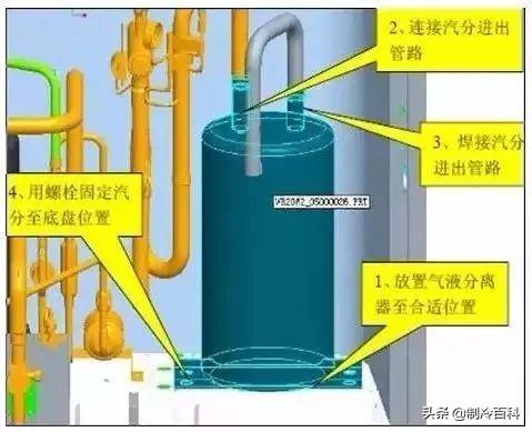 注意:要收集油分、汽分、储液罐内倒出的压缩机润滑油量,并做好相关记录,方便更换压缩机、汽分等原器件后,对系统进行润滑油的补充追加。
