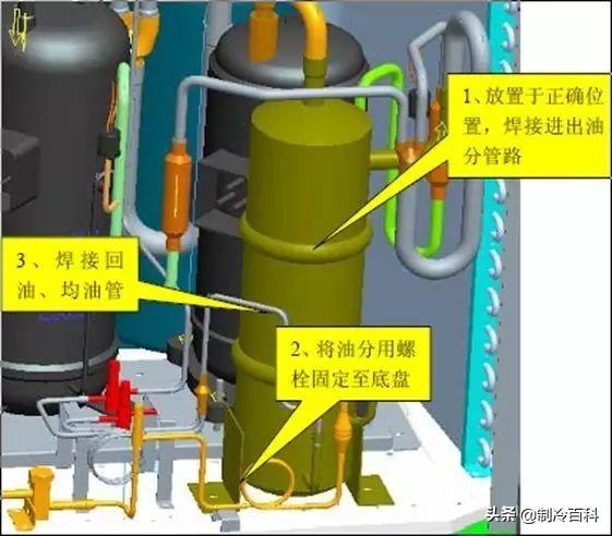 如果变频压缩机损坏,或者是定频压缩机内油质被污染时,需要拆掉变频压缩机,甚至更换油分离器和气液分离器