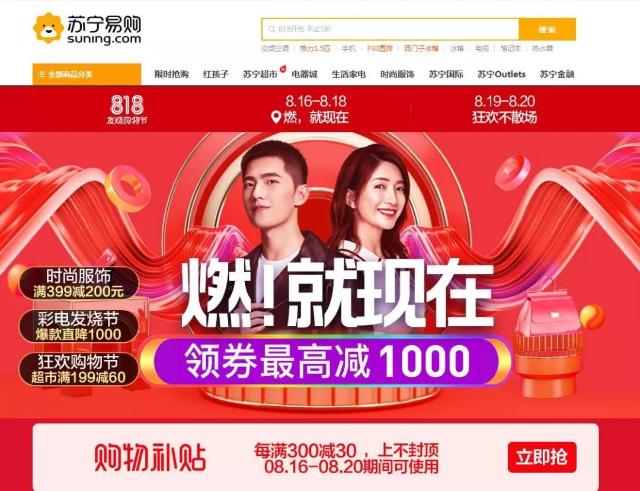(央视财经 《经济信息联播》) 8月到,电商爆!京东“热8购物季”、天猫88会员节、网易考拉8·16“超级大牌折扣季”…今天的主场是——苏宁8·18发烧购物节。