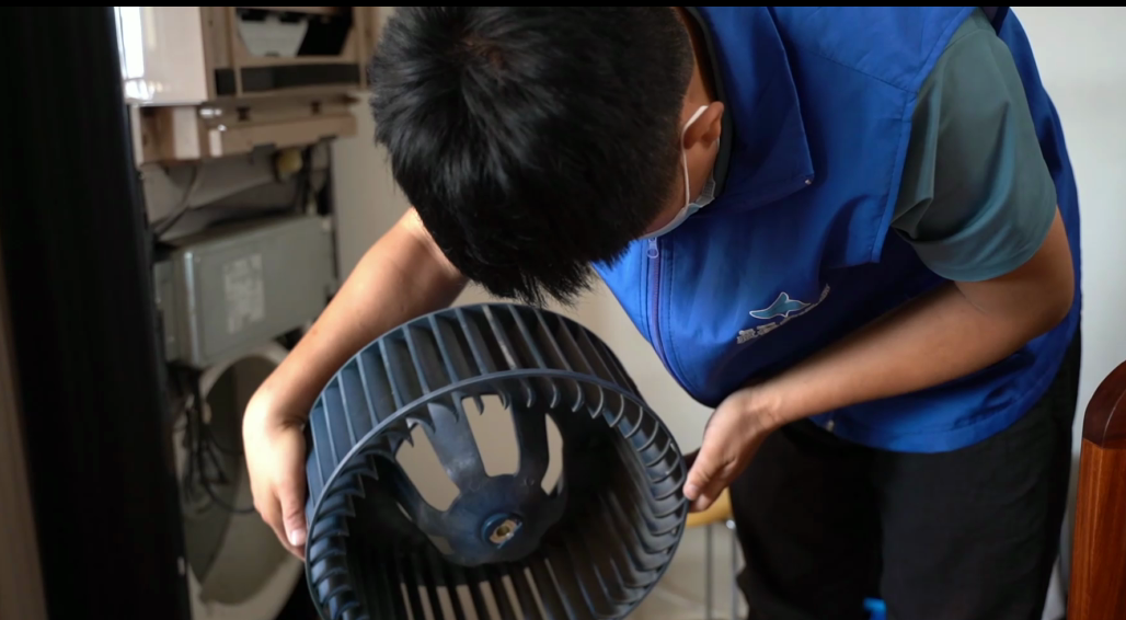 上半部分清洗完之后就可以清洗下半部分,下半部分主要清洗的是空调的导风轮。
