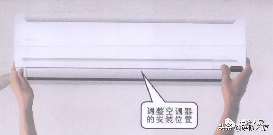 室内机漏水时,应首先检査室内机的固定是否不平,如果室内机固定不平,应重新调整固定,如图所示。