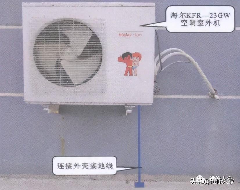 如果该空调器的电气线路的绝缘电路都正常,则漏电可能是由静电充电引起的,并非空调器本身故障,可对空调器外壳接地排除漏电故障,如下图所示。