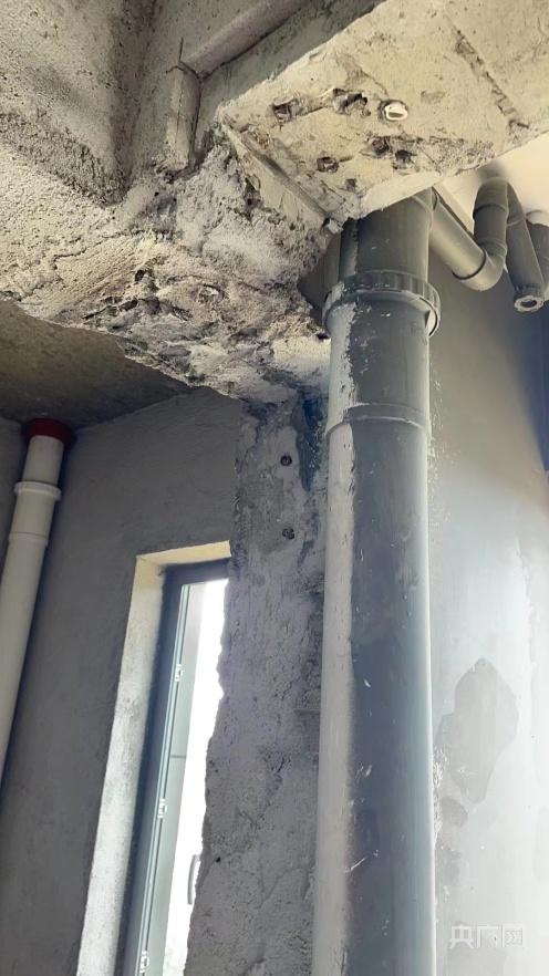 杨女士提供的现场图片和视频显示,一楼承重柱里的钢筋被钻断,上下两排已被水钻钻通。六楼房屋的厨房、客厅墙壁上已出现裂缝,九楼住户的卧室墙壁上也有裂纹。