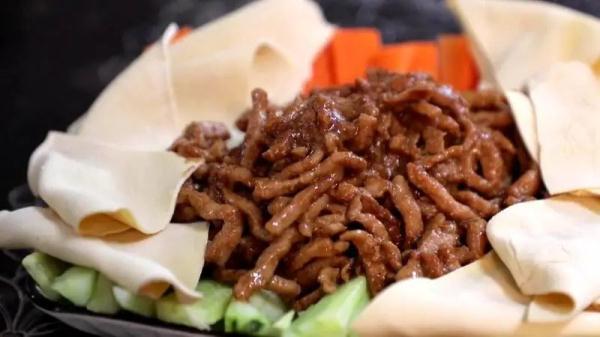 一盘色香味俱全的京酱肉丝出锅。