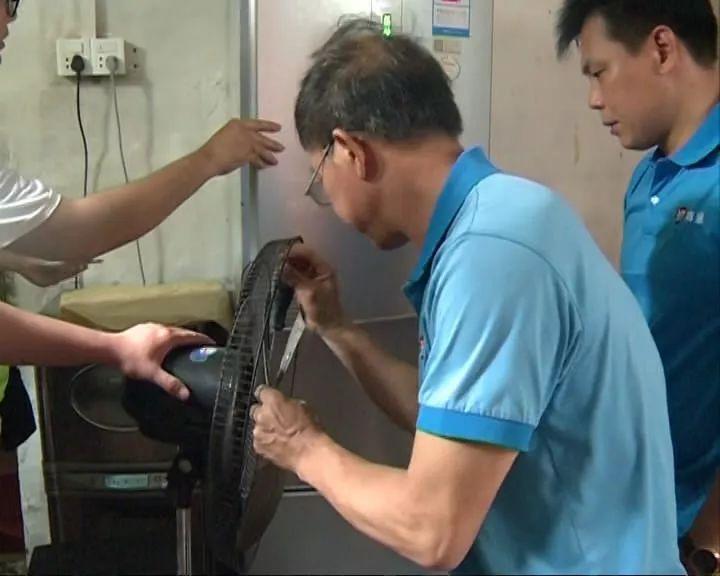 上午,在社工的带领下,义工师傅们拎着工具箱走访入户,他们首先来到的是中兴村独居老人梁婆婆的屋企。师傅们分工合作,一些帮手清洗风扇、冰箱和洗衣机,另外还有负责全屋家电检测。此前,梁婆婆家里的抽油烟机一直启动不到,原来问题出在线路上。