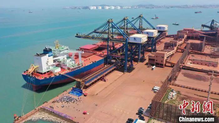 5月26日,来自巴西并载有淡水河谷铁矿石的40万吨级矿石船“远福海”轮首靠罗屿港9号泊位并顺利作业。 何威良 摄